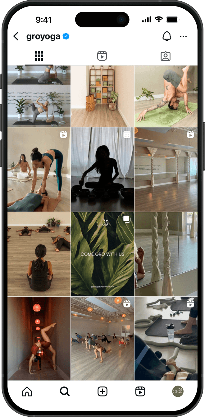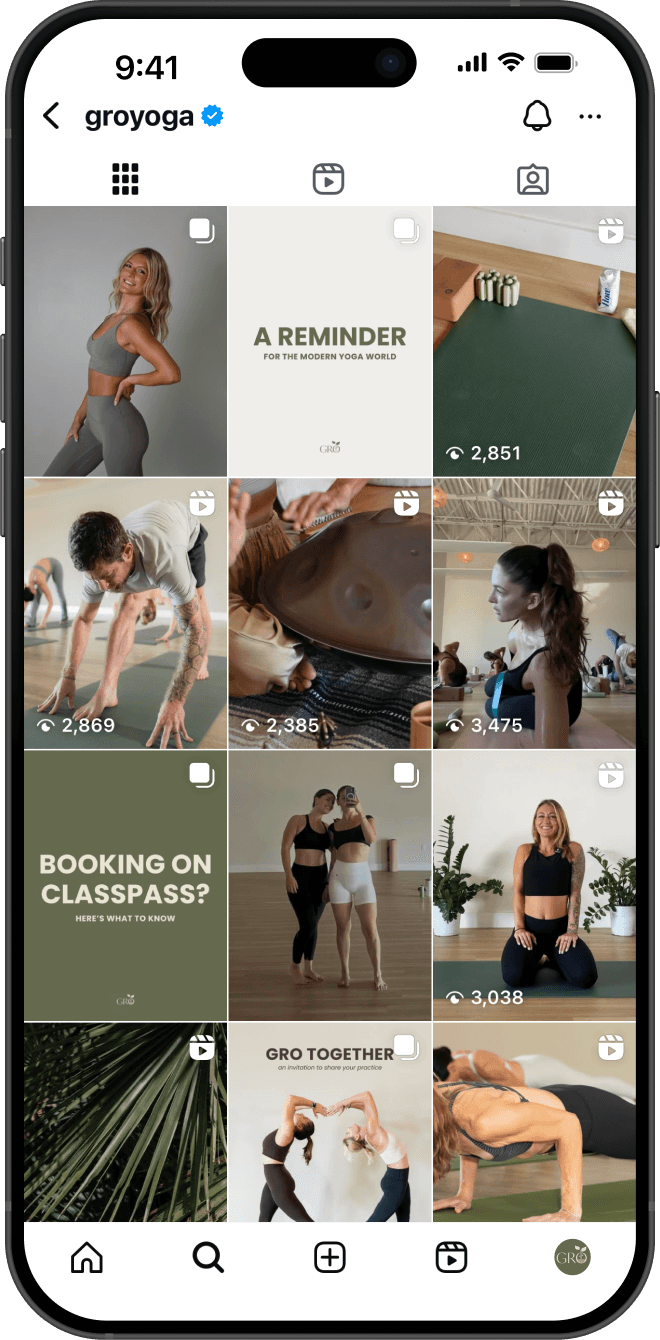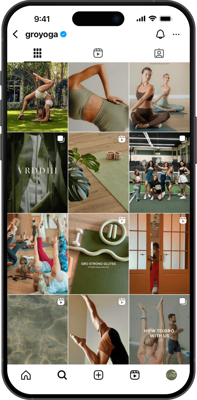 I restructured the studio’s content approach, moving from scattered posts to a cohesive visual and narrative flow. Every piece of content was designed to reflect Gro’s core values of thoughtful movement, sustainability, and community.