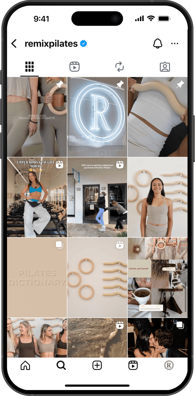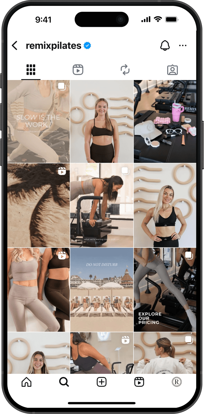 Remix Pilates was entering a competitive fitness landscape where workout options were plentiful and many Pilates studios had started to feel interchangeable. The opportunity was to help Remix carve out a space of its own: elevated yet welcoming, bold but not overwhelming, and unmistakably distinct in both energy and identity.